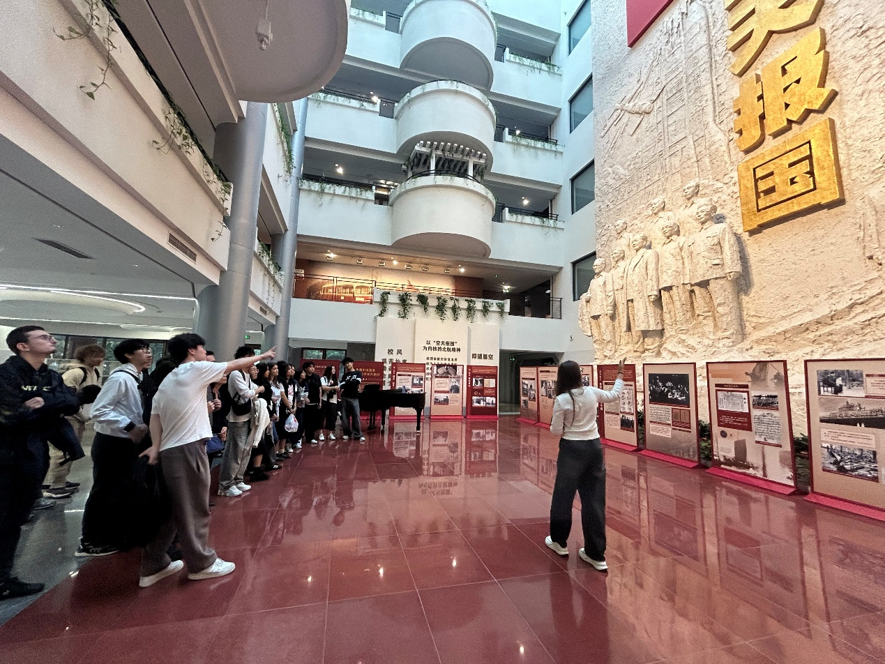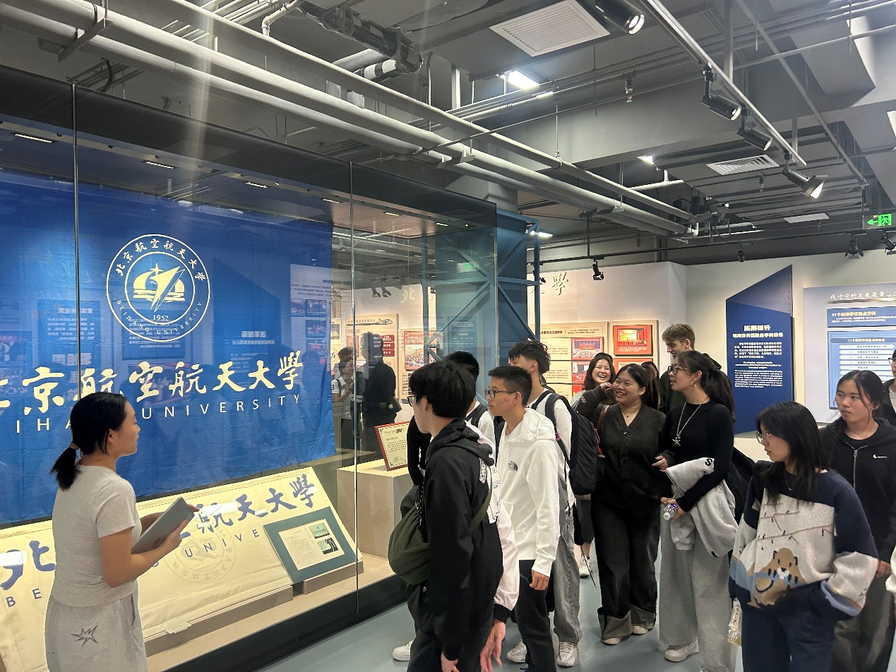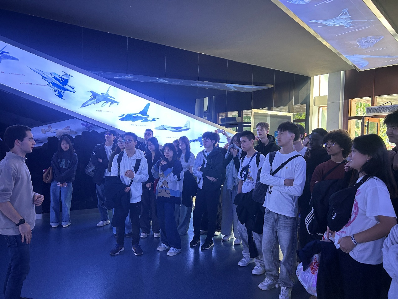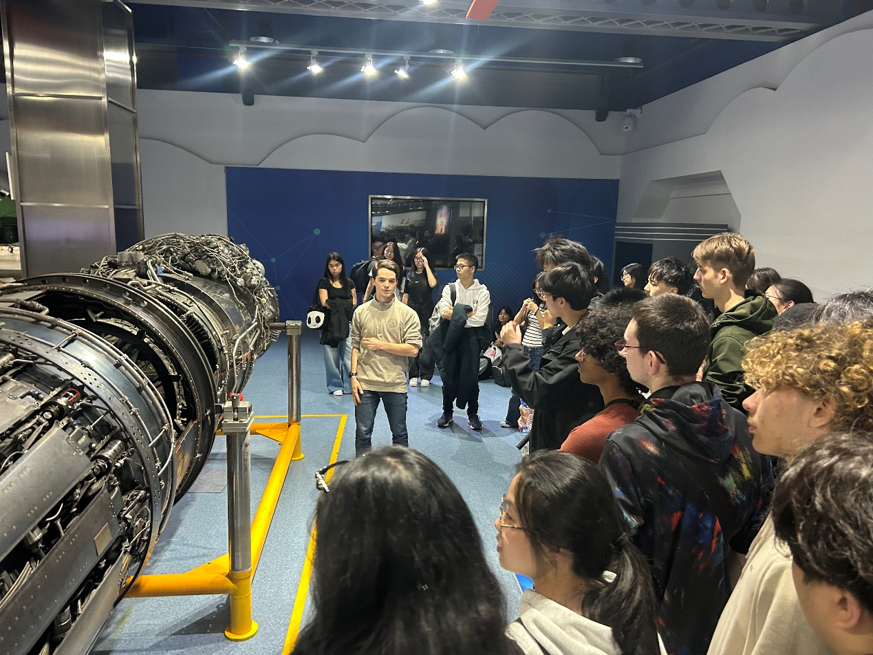 随后,员工团体参观了航空航天博物馆与校史馆。在航空航天博物馆,现场由法国职工Tristan担任讲解,他为来访高中生详细介绍了“长空逐梦”“银鹰巡空”“空天走廊”“神舟问天”四个展区。通过与真实飞机与发动机等飞机结构的近距离接触,同学们进一步了解了人类航空航天进步历程,也直观感受到了中国航空航天事业的蓬勃发展。