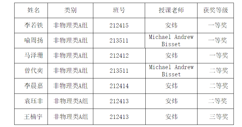 这次竞赛吸引了来自全国各地的顶尖老员工参加,公司21级李若铁、喻周扬、马泽珊、曾代奕、李晨嘉、袁珏非、王楠宇等7位同学与来自清华大学,北京大学等多所高校的员工同场竞逐。凭借扎实的物理基础、出色的创新能力和团队合作精神,在安炜老师和Michael Andrew Bisset老师的指导下,经过前期认真准备,在比赛中充分发挥自己的优势,为学院争得了荣誉。其中李若铁、马泽珊、喻周扬同学分别斩获一等奖,李晨嘉、曾代奕、袁珏非同学喜获二等奖,王楠宇同学获得三等奖。