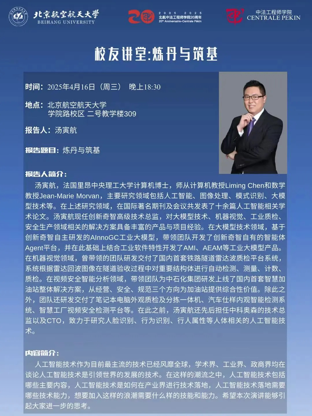 汤寅航,法国里昂中央理工大学计算机博士,师从计算机教授Liming Chen和数学教授JeanMarie Morvan,主要研究领域包括人工智能、图像处理、模式识别、大模型技术等。在上述研究领域,在国际著名期刊及会议共发表了十余篇人工智能相关学术论文。汤寅航现任创新奇智高级技术总监,对大模型技术、机器视觉、工业质检、安全生产领域相关的解决方案具备丰富的产品与项目经验。在大模型技术领域,基于创新奇智自主研发的AInnoGC工业大模型,带领团队开发了创新奇智自有的智能体Agent平台,并在此基础上结合工业软件特性开发了AMI、AEAM等工业大模型产品。在机器视觉领域,曾带领的团队研发交付了国内首套铁路隧道雷达波质检平台系统,系统根据达回波图像在隧道验收过程中对重要结构体进行自动检测、测量、计数、质检。在视频安全智能分析领域,带领团队为中石化集团研发上线了国内首套智慧加油站整体解决方案,从经营、安全、规范三个方向为加油站提供综合性价值。除此之外,团队还研发交付了笔记本电脑外观质检及分拣一体机、汽车仕样内观智能检测系统、智慧工厂视频安全检测平台等。在此之前,汤寅航还先后担任中科奥森的技术总监以及CTO,致力于研究人脸识别、行为识别、行人属性等人体相关的人工智能技术。