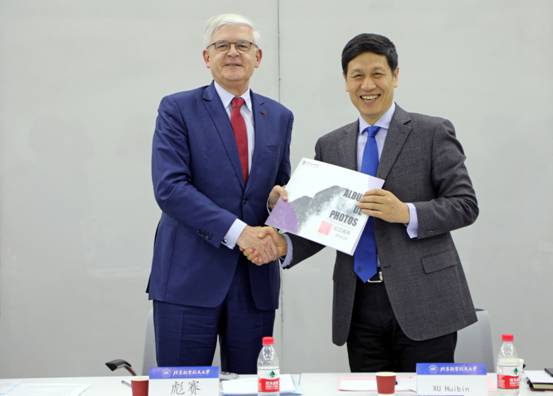 徐惠彬董事长与彪赛教授对学院的工作计划和目标达成共识,对学院朝气蓬勃的发展给予充分肯定,希望学院能够充分利用自身优势,加强科研工作,创新合作模式,实现可持续发展,培养更多的具有全球竞争力的人才,为中法的美好明天不断奋斗。