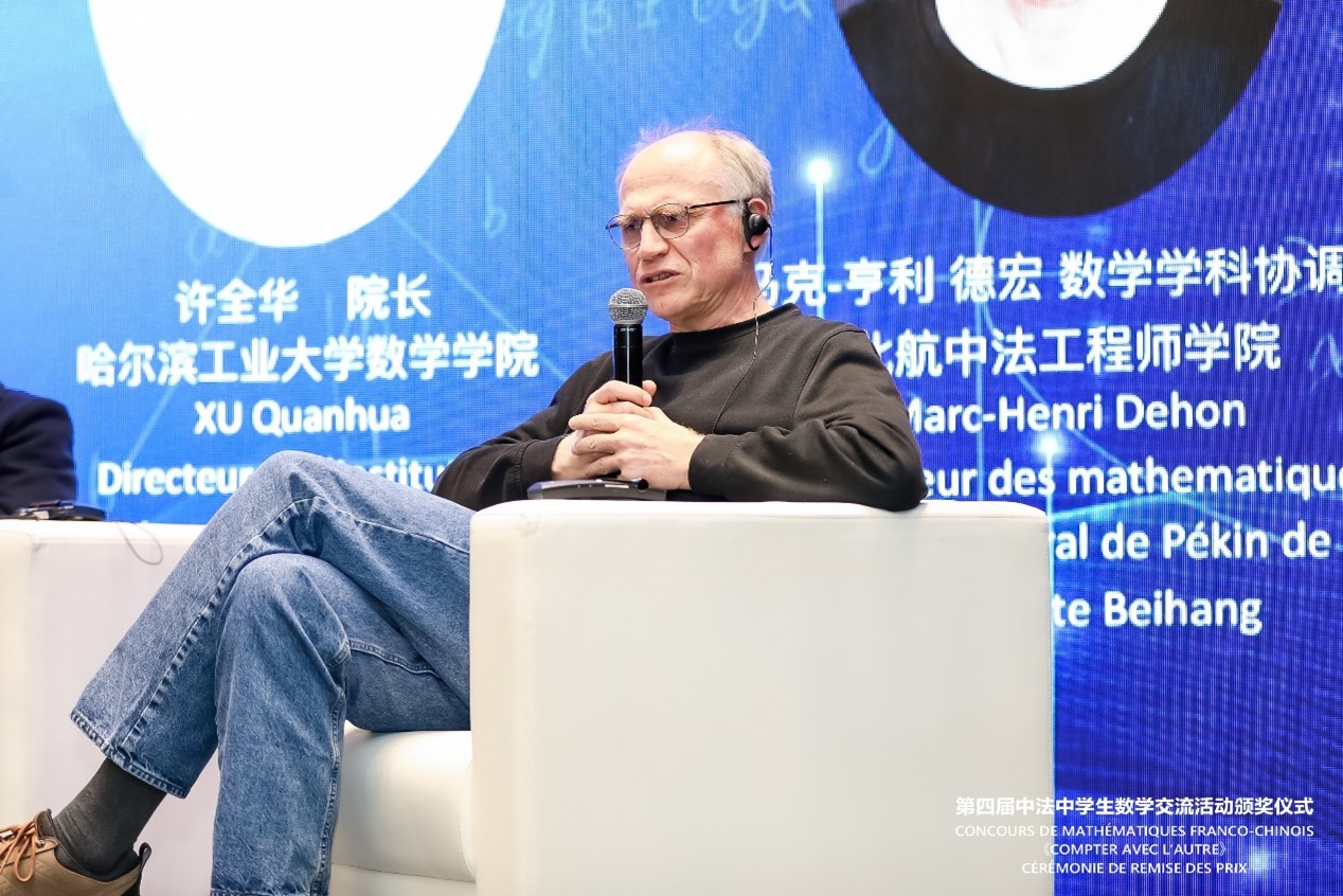 2023年4月,中法中员工数学交流活动颁奖仪式在北航举办。他与中科院院士田刚教授、哈尔滨工业大学数学研究院经理许全华教授一道,与到场的获奖师生就中法两国的数学文化、数学教学以及当前人工智能等热点问题进行了热烈的讨论与交流,共同呈现了一场精彩纷呈的数学交流盛宴。数万名中员工数学爱好者在线参会,进一步拓展了中法数学教育的影响。