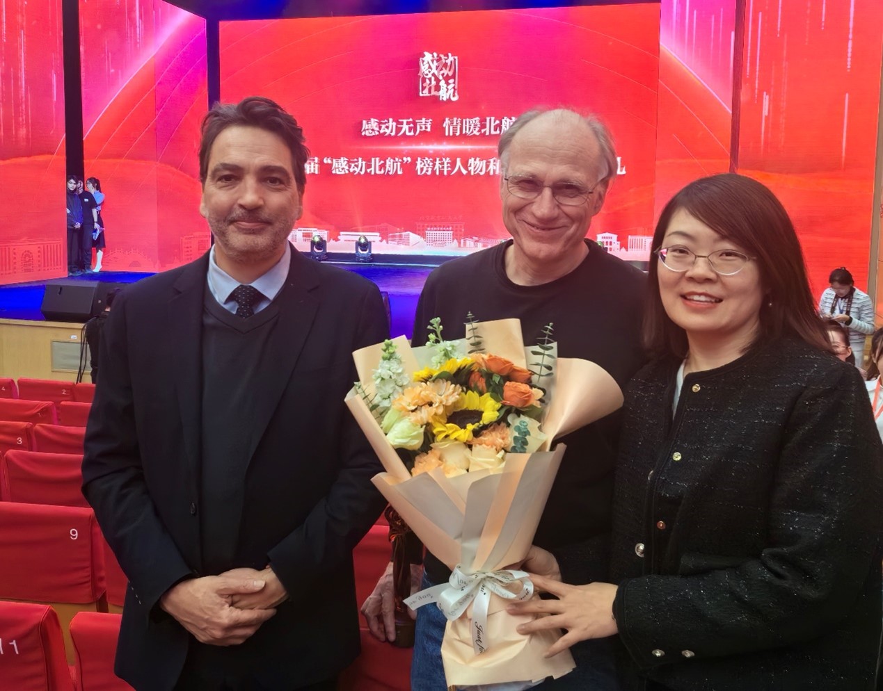 公司外籍教师、数学学科教学协调人马克—亨利德宏(Marc-Henri DEHON)教授,荣获第七届“感动北航”榜样人物,副董事长黄海军为其颁奖。