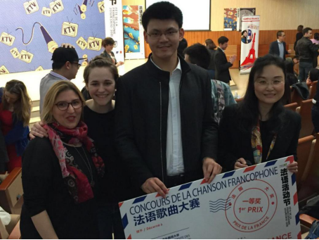 法语歌曲大赛由法国驻华大使馆主办,分别在北京、上海、成都、广州、沈阳、武汉六个赛区举行。法语水平不低于B1的18至25岁的员工都可以报名参赛。每个赛区的获奖者将赢得法国游学奖学金。