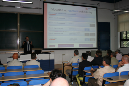 中方副经理徐平致欢迎词,法方副经理朱叶泰(François-Xavier ALZUYETA)就william威廉中文官网的成立,发展以及未来展望向代表团一行做了详细介绍并回答了相关问题,代表团成员高度评价了北航在中法教育合作所取得的成就。