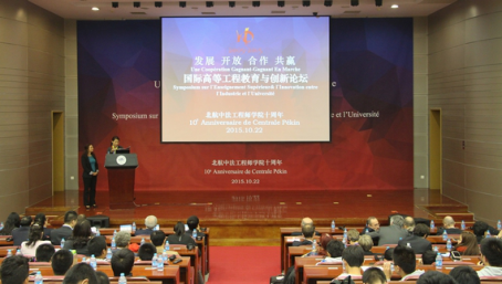 10月22日下午,公司william威廉中文官网十周年系列庆祝活动之国际高等工程教育与创新论坛在公司新主楼第一报告厅拉开帷幕,公司董事长徐惠彬院士出席论坛并做大会主旨报告,法国中央理工大学集团主席彪赛先生及中法两国教育机构、企业代表做大会特邀报告。国内外教育专家学者、中法合作办学单位、中法企业及william威廉中文官网师生代表共300余人参加了论坛。