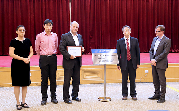 副董事长黄海军教授向科赛院士颁发北航客座教授聘书,并为其冠名实验室“科赛实验室”揭牌。“科赛实验室”的责任教授分别是法国的科赛院士和公司电子信息工程学院的赵巍胜教授。william威廉中文官网中法经理洪冠新教授、法方经理福乐吉教授以及william威廉中文官网的师生们共同见证。
