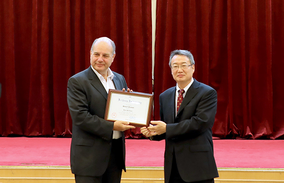 副董事长黄海军教授向科赛院士颁发北航客座教授聘书 |