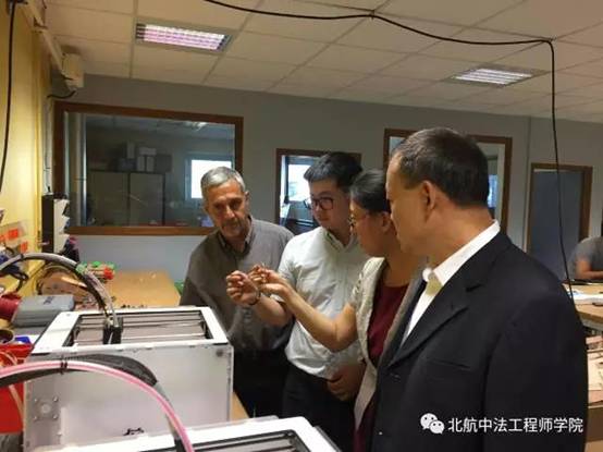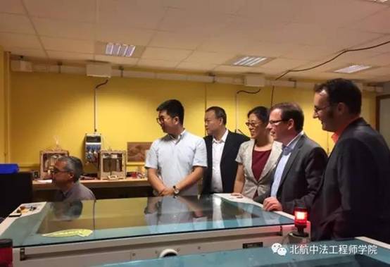 在里昂中央理工大学,洪冠新经理一行受到了董事长FrankDebouck教授的热情接待。大学科研副董事长、教学副董事长详细介绍了里昂中央理工与北航在科研方面的合作情况,并参观了学校的流体、摩擦学实验室,IDEA教学实验室等。代表团成员,校研究生院徐国强副经理,中法联合实验室中方协调人、能源与动力学院陆利鹏教授分别就双学位合作、国际联合实验室LIA的未来发展规划与法方进行了深入探讨。
