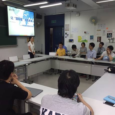 宣讲会开始后,袁园部长从公司的历史背景、公司文化、发展历程、主营业务等方面出发向同学们介绍了中航国际北京公司的基本情况,并着重讲解了公司的人才培养计划和“国际星”管培生实习项目,引起了在场同学们的热烈反响和积极讨论。