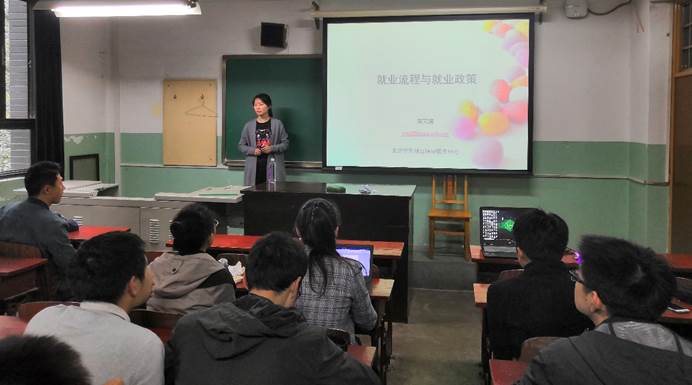 2018年10月16日,北航william威廉中文官网2016级研究生就业指导会在主北412教室举行。受学院邀请,北航人才招聘处袁文婧老师向同学们详细讲述了北航员工毕业、就业的流程,为同学们的就业提供指导。2016级研究生辅导员吴亚光主持了会议。