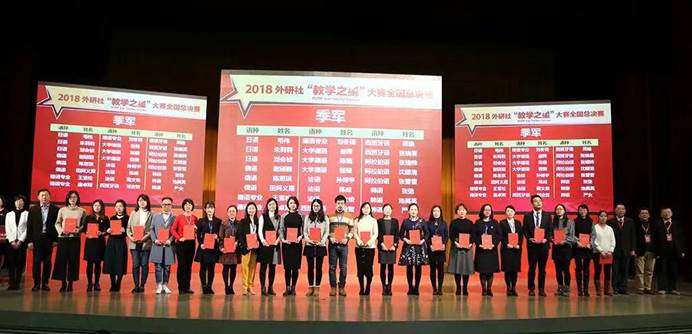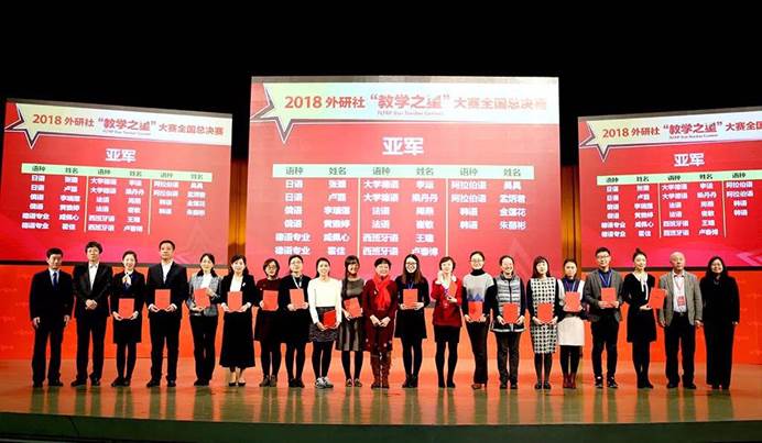 外研社“教学之星”大赛自2013年创办以来,已经成为国内高校外语教育界的一项大规模、高水平的权威赛事。2018年大赛涵盖日语、俄语、德语、法语、西班牙语、阿拉伯语和韩语七个语种。通过初赛,有来自全国近150所院校300余名教师成功进入全国复赛。全国复赛以录制真实课堂视频的形式进行评选,组委会组织专家,经过匿名评审,最终选拔出共108名佼佼者晋级全国总决赛,其中法语组共14名选手入围。经过激烈的角逐,大赛最终产生1位冠军,2位亚军和3位季军。
