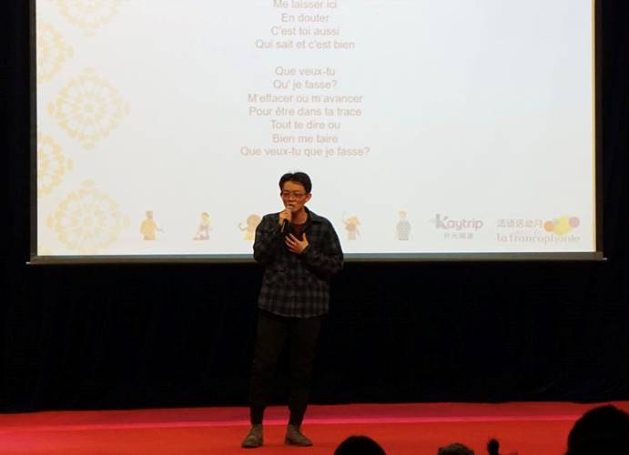 在第一天的法语歌曲大赛中,公司2015级赵河森同学以一曲《Ecris l’Histoire》斩获比赛冠军,并将在三月底代表北京赛区参加全国总决赛。
