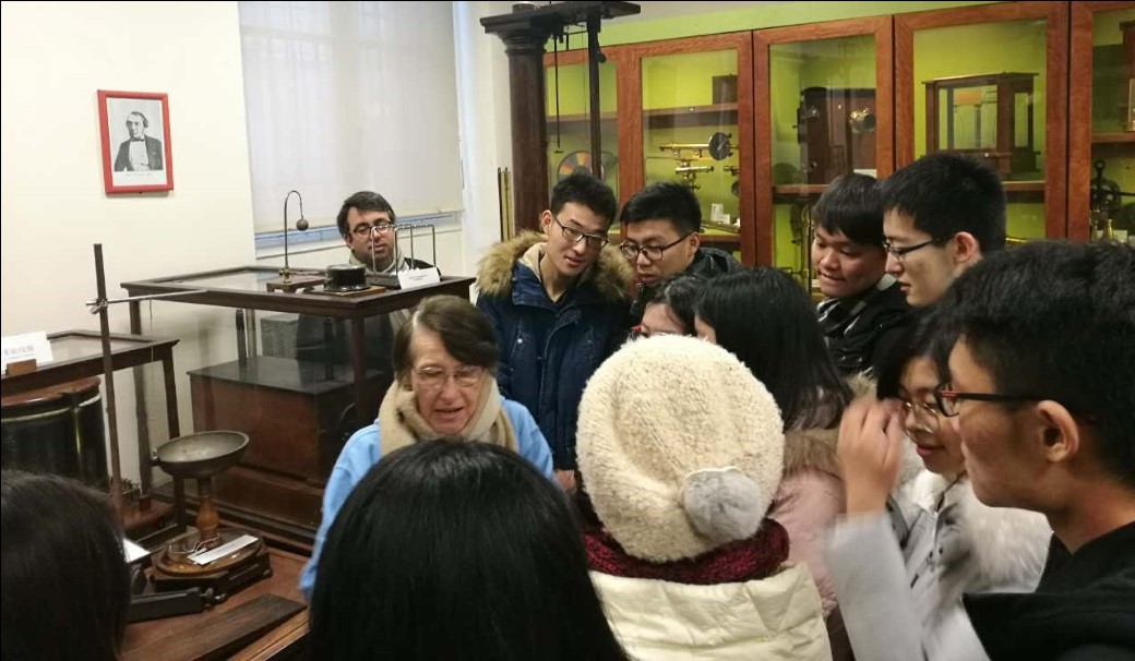 路易大帝中学是一座历史名校,坐落于巴黎五区,周围著名建筑林立,如索邦大学、先贤祠等。如同它的邻校亨利四世中学一样,这所高中以其出色的教学质量和优秀的员工素质而闻名,其中包括中学教育(99%的高考毕业率)和“文、理、商”三科的预科。预科班中,员工考入如巴黎综合理工、巴黎高等师范学院、巴黎高等商学院等著名大学校的比例很高。在游学活动之前,学院帮助员工们与路易大帝中学的20名预科班员工建立了“一对一交流小组”。游学伊始,LLG安排我们参观了他们的科学实验室。在约20平方米的屋子里陈列着各种物理化学实验仪器,墙上挂着百年前的元素周期表。接待老师为我们现场演示了多个经典物理实验,既有趣、更因为浓浓的历史气息而引人流连。
