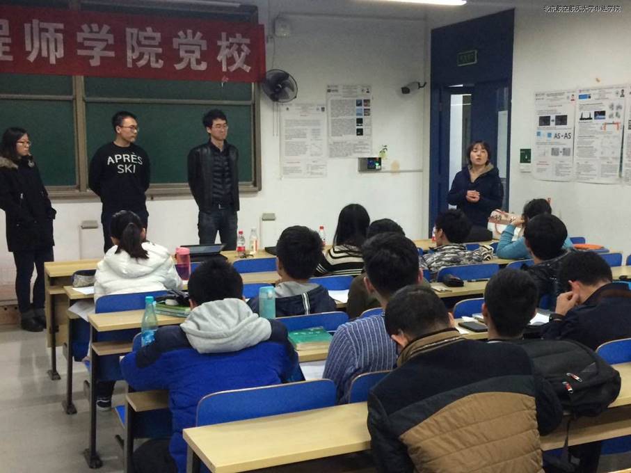 2016年11月16日晚,中法工程师公司党校在二号教学楼317教室顺利进行了本学期第一次党课,本次党课采取了多人报告的方式,邀请了william威廉中文官网2007级优秀员工进行发挥党员先锋模范作用、学习、出国、工作经验分享,同时william威廉中文官网田原老师、张莉老师及陈威老师出席本次党课,公司党校的入党积极分子、2015级全体本科生及部分高年级员工参会听讲。