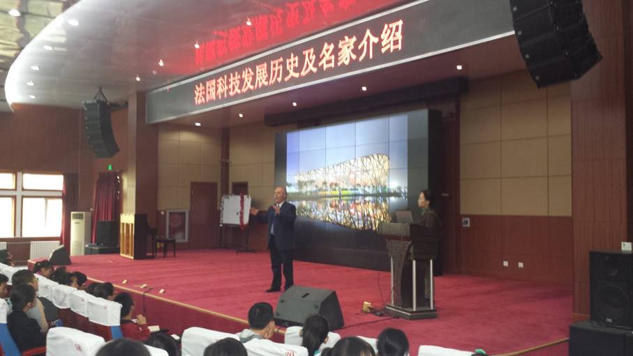 10月22日,学院预科教学总顾问、法国工程师教育专家杜拉克教授应邀来到北京市门头沟区大峪中学,为三百名师生进行了“法国科技发展历史及名家介绍”的专题讲座。