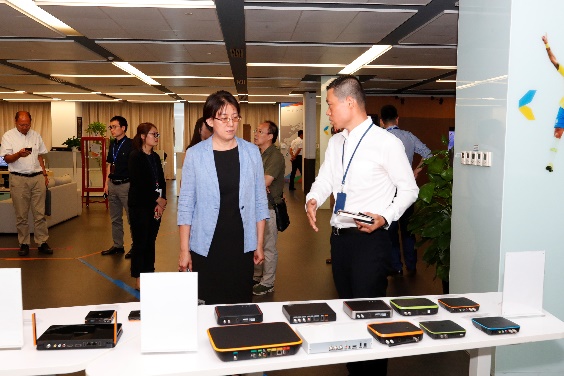 来访嘉宾先后参观了四达时代集团播控中心、译制配音中心、演播厅、研究院等部门。洪经理对四达时代集团在网络建设、节目传输、频道运营、内容开发、非洲市场布局及媒体影响力等方面有了全面认知,并感慨地说,“没想到北京经济技术开发区还有这么一家中非文化交流的领头羊企业。”