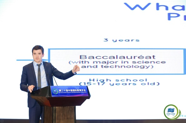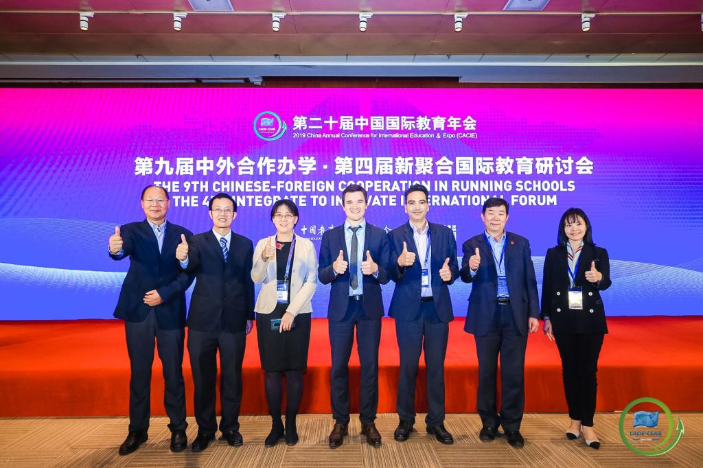 年会期间,召开了第九届中外合作办学研讨会,中法合作办学发展联盟在年会研讨会上正式揭牌成立。william威廉中文官网经理洪冠新教授受国际交流协会委托,代表联盟做了《中法合作办学2018年度报告》。法国Chaptal预科学校副董事长Herve RIOU教授应邀做了《法国的STEM教育》报告。william威廉中文官网法方经理Frédéric GENTY教授、副经理徐平教授出席会议。