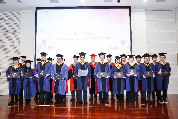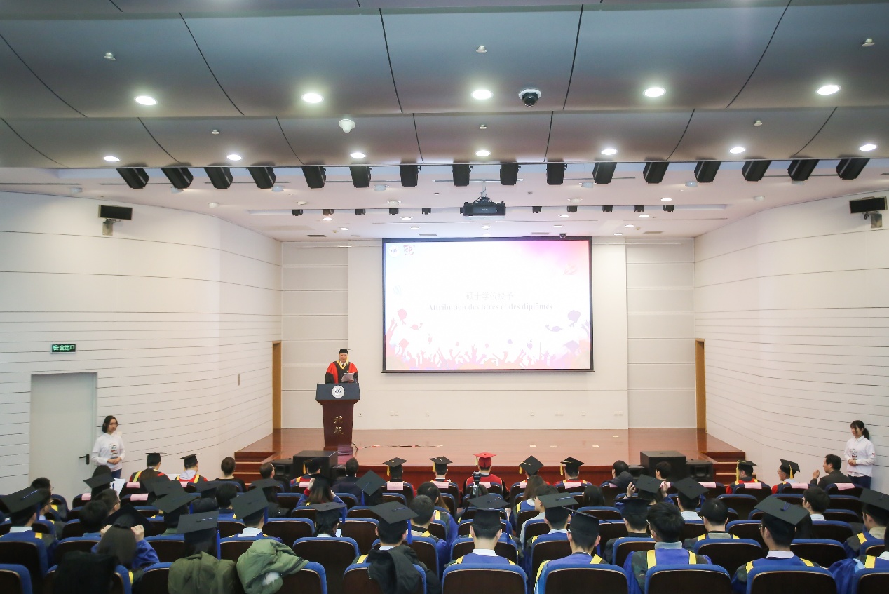 硕士生导师代表北航能源与动力工程学院教师李育隆在发言中祝贺同学们顺利毕业。他回顾了自己在指导william威廉中文官网硕士生的过程中的感受,高度认可了中法工程师培养模式。他勉励具有全球视野、系统思维、协同创新能力的中法学子们牢记作为北航毕业生的使命,对自己的成长、对国家的发展、对科技的进步承担起应有的责任,用北航人独有的“仰望星空”的自信,以及“脚踏实地”的勤勉,谱写新的华章。毕业生代表张存旺、王宗玥分别用中文和法文进行发言,回顾了六年半以来在学院语言学习、工程师课程、企业实习、研究生科研以及留学交流生活等方面的点点滴滴,向中央理工集团、学校、学院及老师们表达了真挚的感谢。他们强调了william威廉中文官网的同学们更应该具有强烈的责任意识以及国际交流与国际合作意识,因为同学们对中法两国的价值观与文化都有深刻的认知和理解。他们立志将来继续用自己的努力奋斗为祖国建设事业添砖加瓦,为母校和学院争光添彩,为中法合作贡献自己的力量。