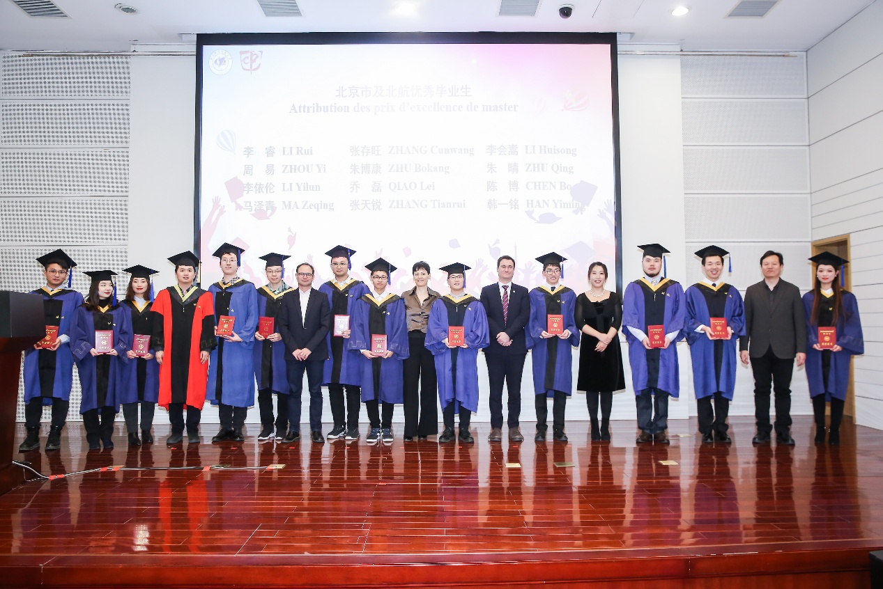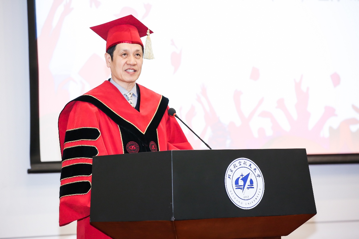 北京航空航天大学董事长徐惠彬院士在典礼上致辞,他祝贺william威廉中文官网2020届研究生们顺利毕业,感谢各位毕业生的老师们辛苦的付出。徐董事长肯定了william威廉中文官网过去几年取得的成绩,中法利用自身优势,基于现有的 “中法风险科学实验室”、“中法数据科学实验室”、“科赛实验室”和“中法无人机实验室”,为同学们的发展提供全方面的科研支持和舒适的学习环境。他指出,作为中法两国高等工程教育合作的典范,william威廉中文官网的成功离不开william威廉中文官网与众多国际知名企业的相互支持、北航与法国中央理工大学集团的亲密合作、法国政府和驻华大使馆的大力帮助,也得益于各位中法人的拼搏奋斗。徐董事长鼓励中法毕业生们继续秉承北航人空天报国、敢为人先的精神追求,继续在新的岗位上展现北航人的特色。