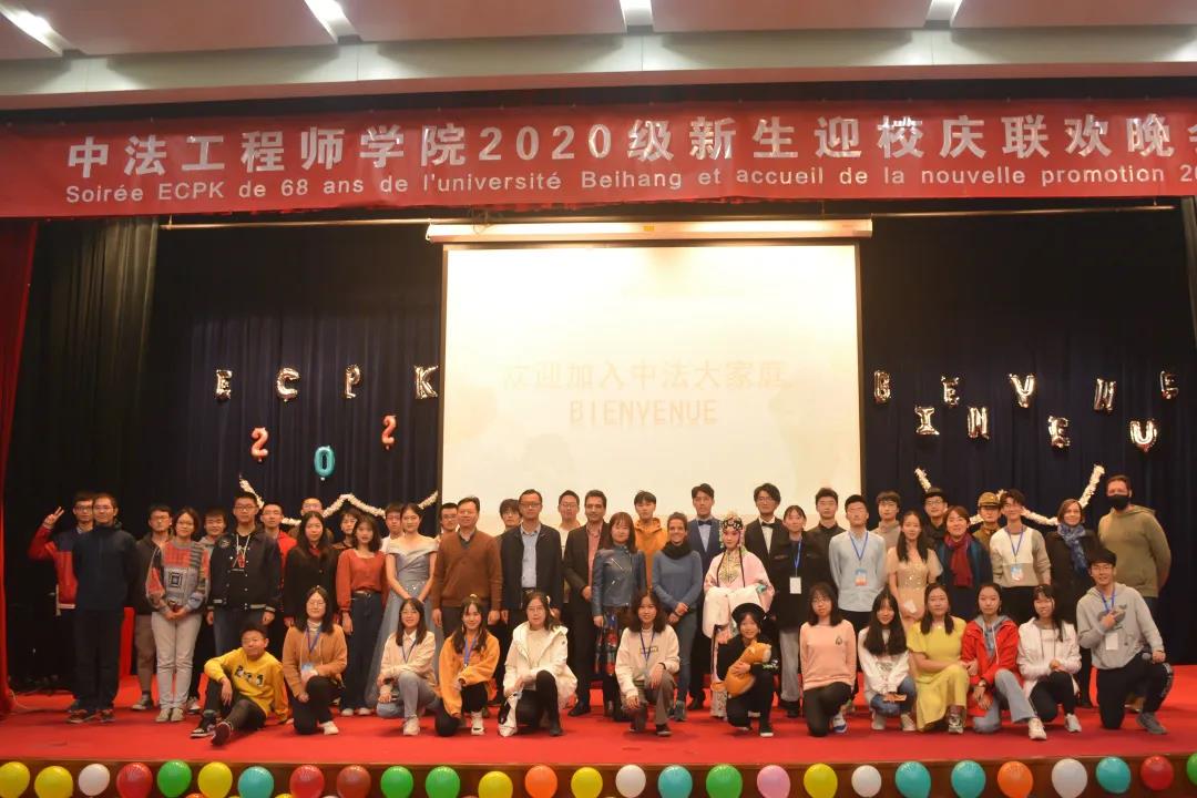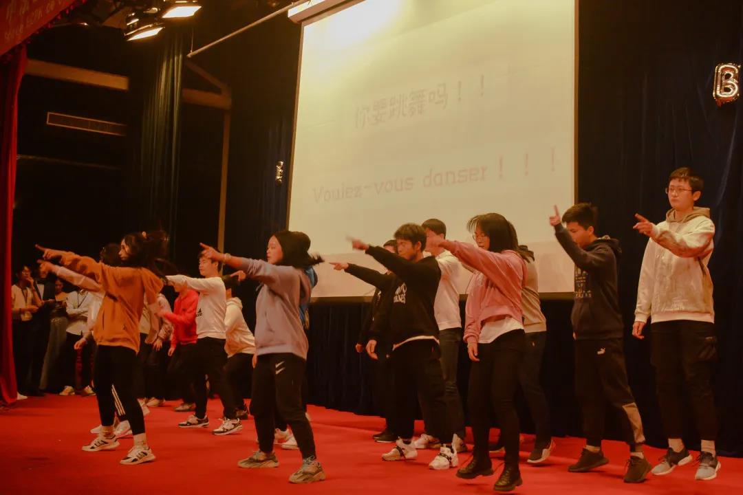 最后,到场嘉宾公司党委书记张江老师、法方经理Frédéric Genty,学院分团委书记张莉老师、部分任课教师、各年级辅导员与晚会全体演职人员合影留念。