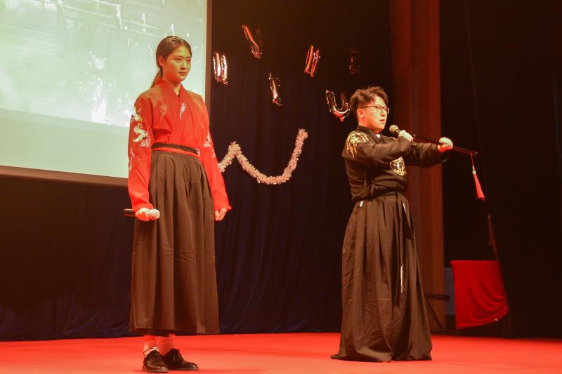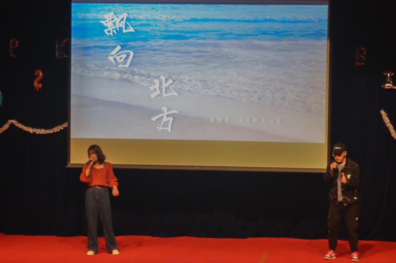 接下来,中法研一的两位同学为我们带来了歌曲《告白气球》,柔情的歌声把我们带到塞纳河畔,为晚会现场染上了浪漫而温暖的氛围。