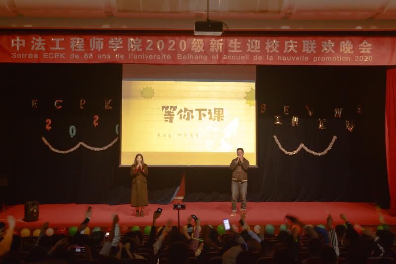 这场晚会的点睛之笔,是由二零级辅导员柳姝姌、肖凯文带来的彩蛋节目——《等你下课》。