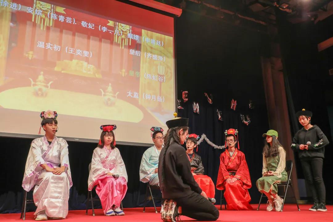 由一班同学带来的名场面复现——《甄嬛传》片段“滴血验亲”,瞬间将观众们拉回那个被神剧支配的夏天。同学们的表演惟妙惟肖,现场笑声不断,掌声不断,名场面果然不负众望,精彩非凡。