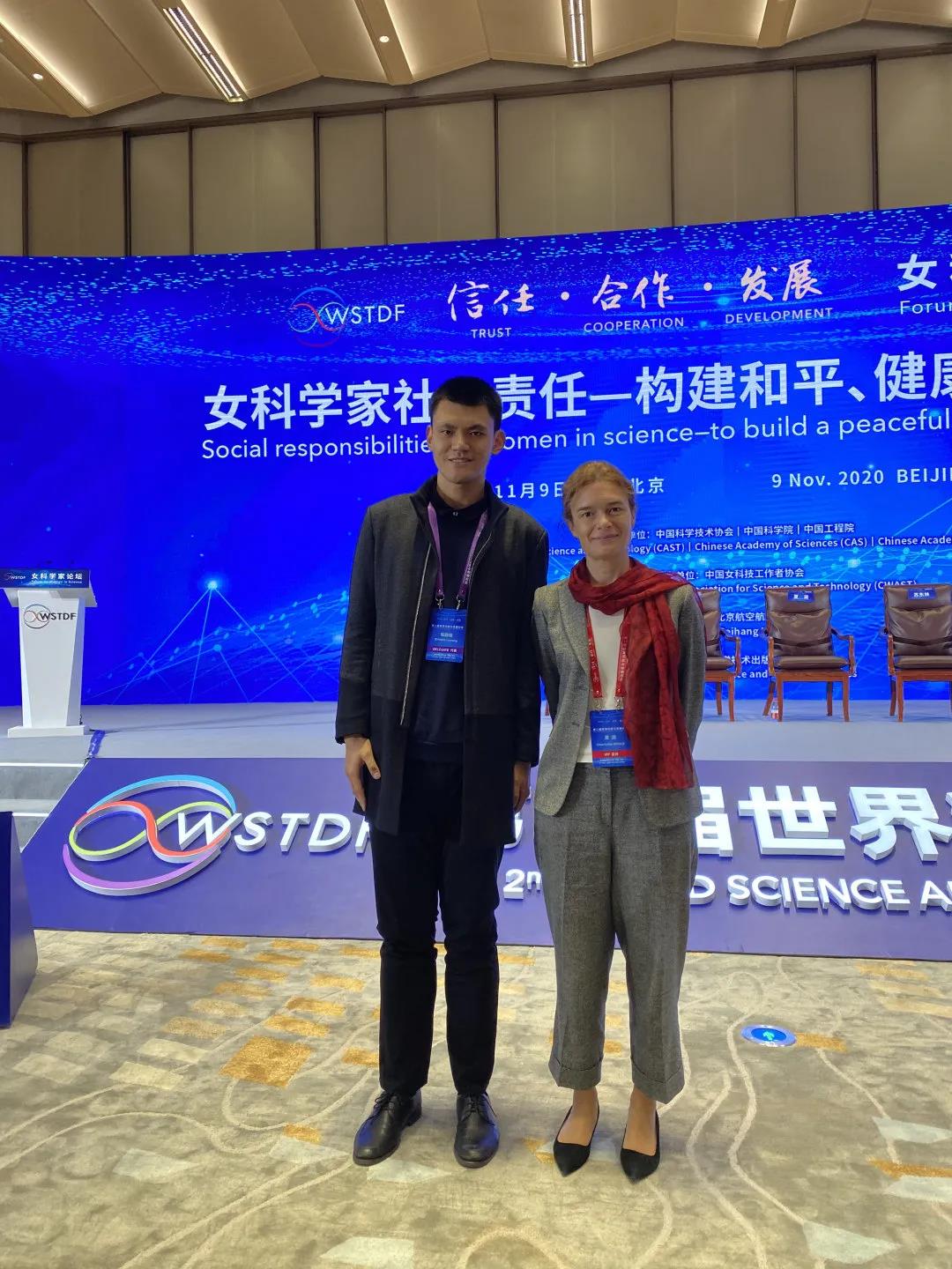 在2020年11月举行的第二届世界科技与发展论坛上,他作为员工科研工作者代表参会,并就“全球化与局部逆全球化并行,世界格局将如何变迁”的问题同各国专家展开英文讨论。同时,他在会议期间还负责全程对接法方代表、中国欧盟商会副会长Charlotte Roule女士。