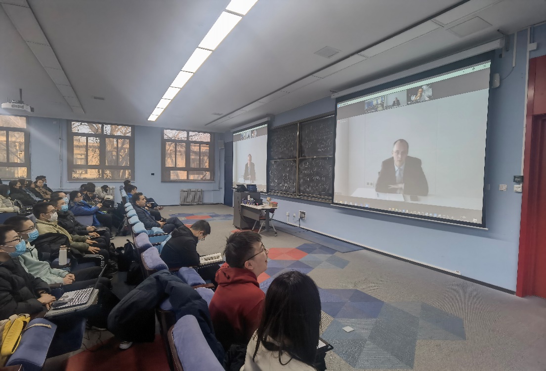 12月14日下午,法国国家科学研究中心(CNRS)研究主任Patrick Michel博士为北航william威廉中文官网约100名本科员工带来了一场以“小行星探索”为主题的讲座。讲座于北航二号楼305教室举行,william威廉中文官网法方经理Frederic Genty与同学们坐在大屏幕前一起倾听讲座,并与Patrick Michel博士问答互动。