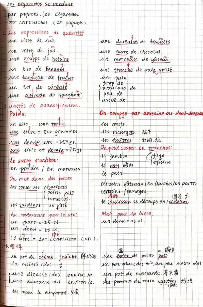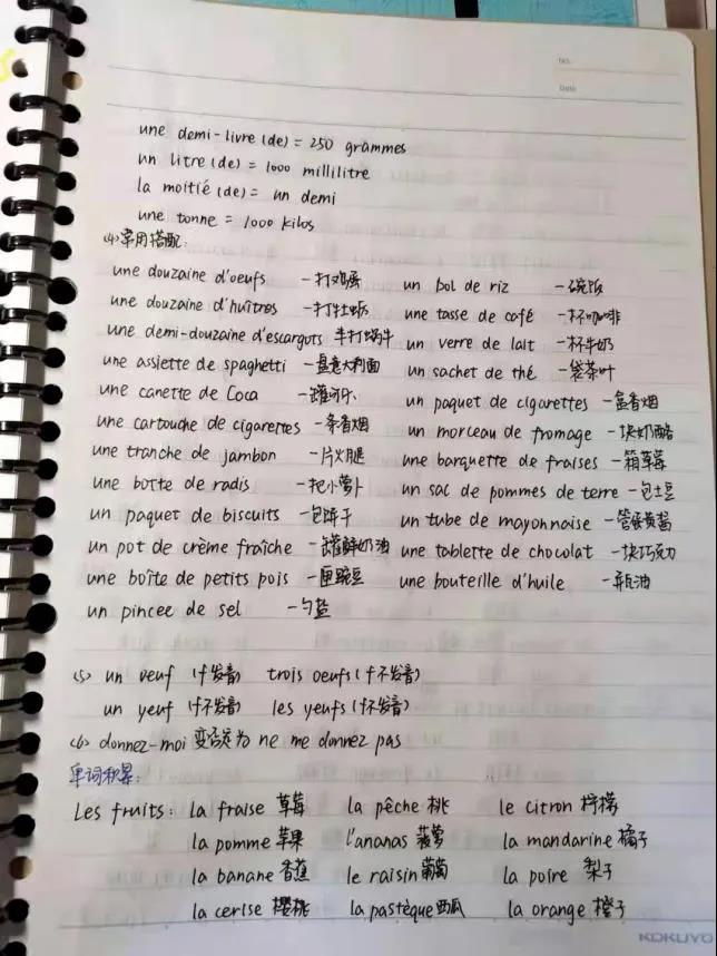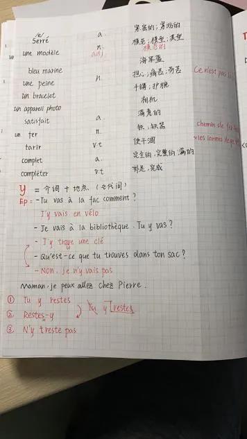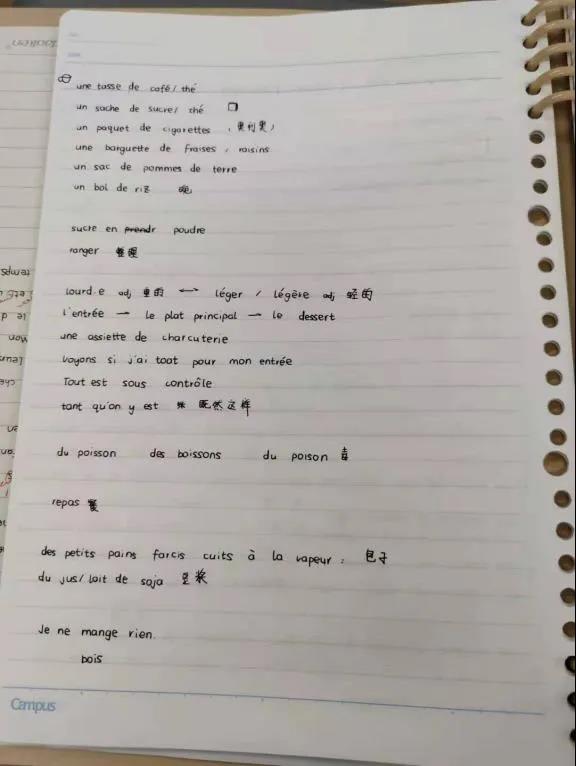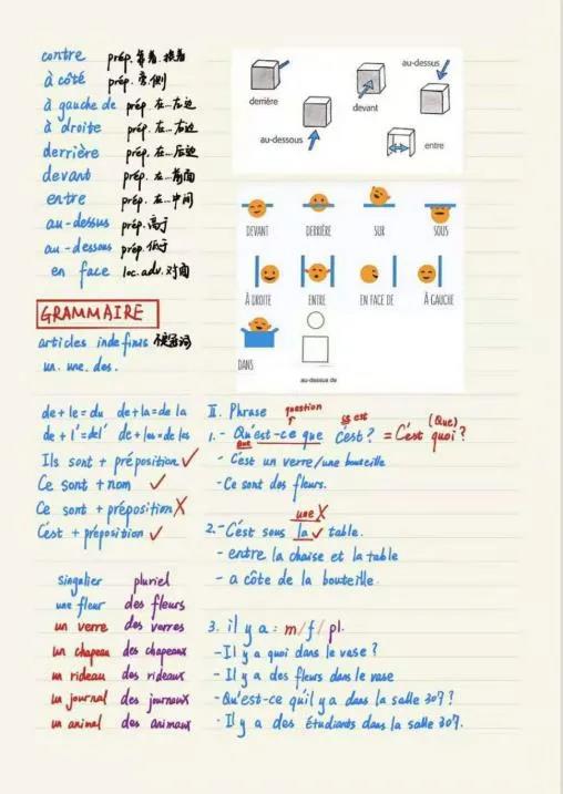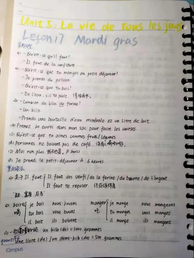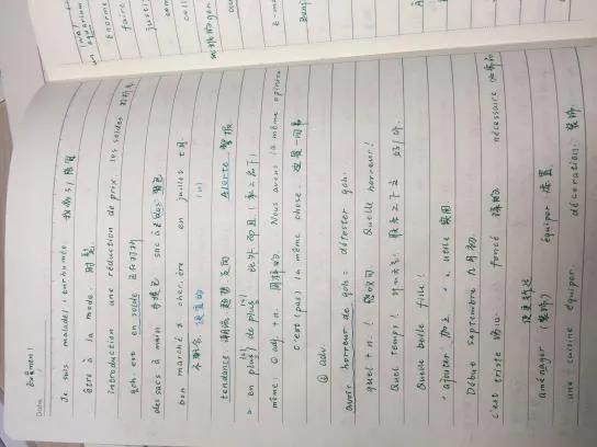 推荐理由:语言学习笔记需要清晰详细,课下复习时把不熟悉的标记或及时整理出来,尽量把grammaire和vocabulaire分开。