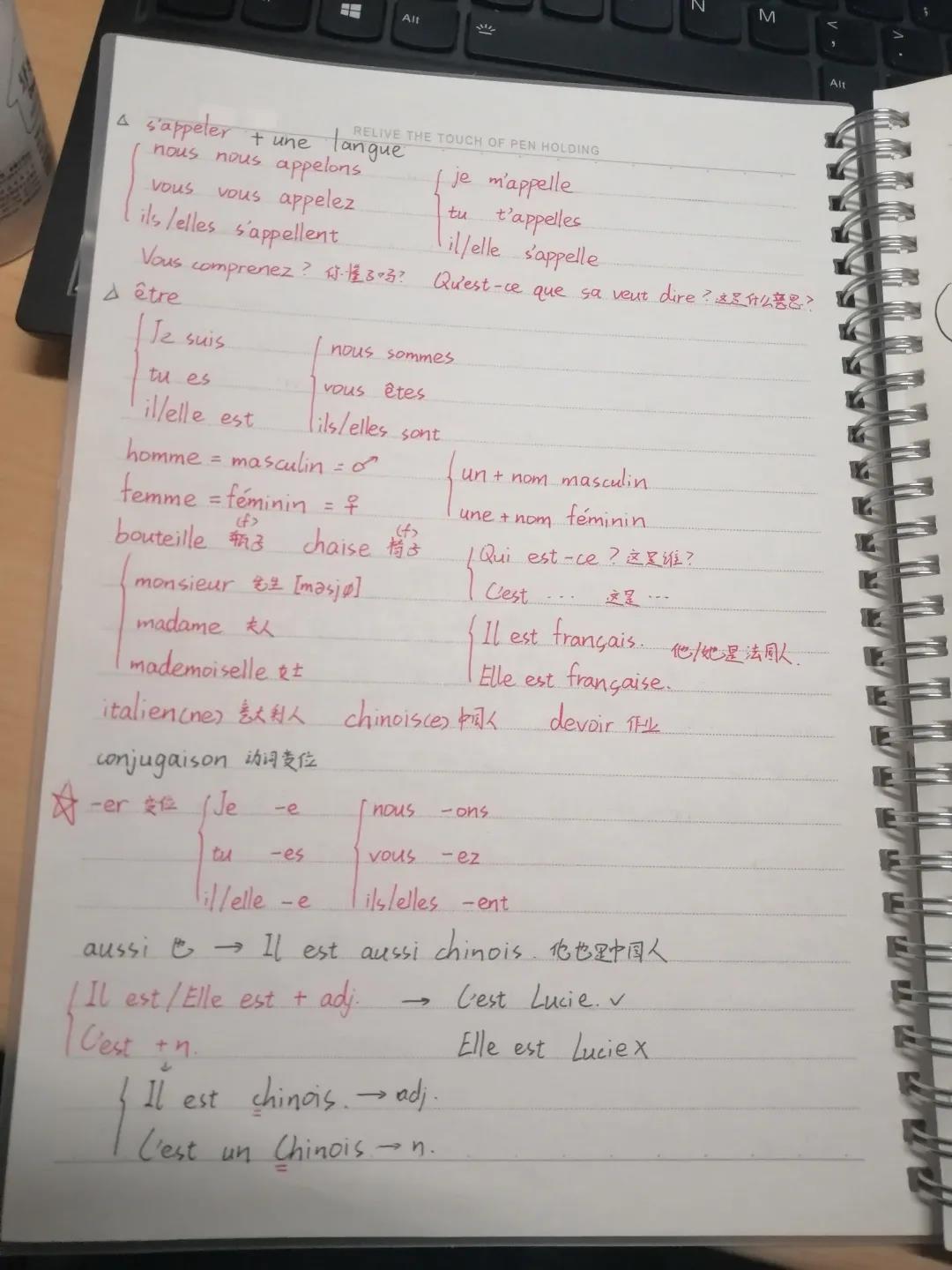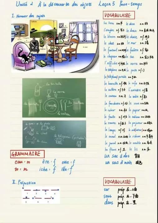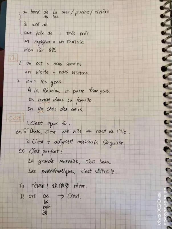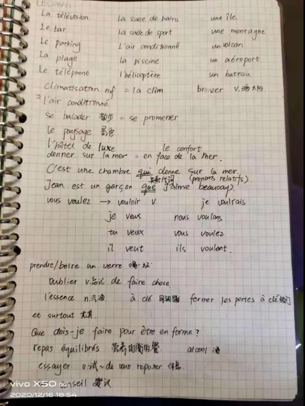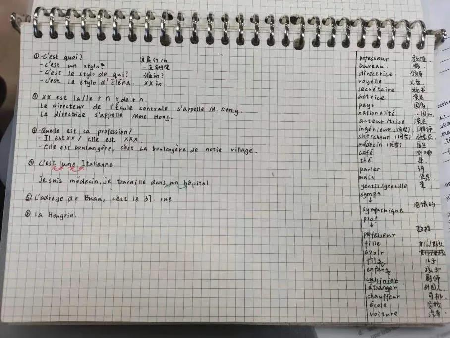 推荐理由:语言学习笔记需要清晰详细,课下复习时把不熟悉的标记或及时整理出来,尽量把grammaire和vocabulaire分开。