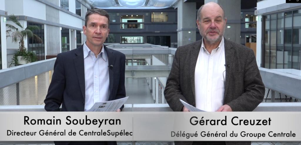 主会场董事长徐惠彬院士赞扬“你们每个人都了不起!北航为你们骄傲!”,勉励全体毕业生爱国奉献、自立自强、不懈奋斗。学院分会场中央理工集团Romain SOUBEYRAN主席和Gérard VREUZET教授因疫情影响未能来华,特此发来视频表达对中法毕业生的祝贺。SOUBEYRAN主席肯定了北航和中法的毕业生培养质量,告诫毕业生不能在取得一些成就后就故步自封,知识需要更新,学会不断反思。VREUZET教授强调各位毕业生不仅是北航员工,也是中央理工集团员工大家庭一员,可以在各行各业互帮互助。最后SOUBEYRAN主席特别感谢了北航对中法工程师公司建设的大力支持。