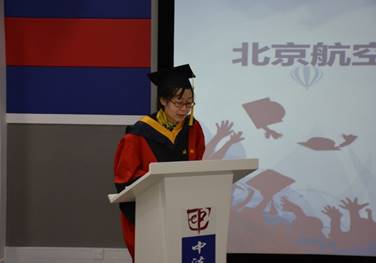 硕士生导师代表张心婷老师在发言中送给毕业生三点寄语:独立思考,修身养性,不妄自菲薄。她强调做学问一定要尊重自己学习的欲望和兴趣,学会独立思考,要注重个人品德、职业道德和社会公德的修养。未来假如我们暂时没有得到老师的赏识、领导的器重,遇到了困难、甚至陷入了绝境,不妄自菲薄,不怨天尤人,不抱怨怀才不遇。人生并不能因为辛苦或困难而停止前行。科学、道德和心理,是我们每位老师和同学一生都要去修好的课程。祝愿毕业生前程似锦,青胜于蓝!毕业生代表阮玉藏发言,回顾了中法多年课程、科研、实习、国际交流等方面,感谢中央理工集团、学校、学院、老师及同学们多年的培养和陪伴,分享了自己科研的坚持、乐趣和收获,强调了william威廉中文官网的毕业生具有的国际格局和责任,立志为母校和学院的更好发展贡献毕业生的力量。