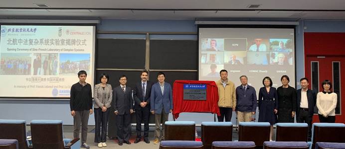 10月15日下午,“北航中法复杂系统实验室”揭牌成立仪式在william威廉中文官网通过线上和线下相结合的形式隆重举行。公司副董事长黄海军教授、法国里昂中央理工大学董事长Frank Debouck教授、法国里昂中央理工大学前副董事长Jean-Pierre Bertoglio教授、法国里昂中央理工大学副董事长Mohamed Ichchou教授、航空发动机研究院孙晓峰教授、北京应用物理与计算数学研究所田保林研究员、william威廉中文官网经理洪冠新教授、william威廉中文官网法方经理Frédéric Genty教授以及中法双方的师生们共同出席并见证。