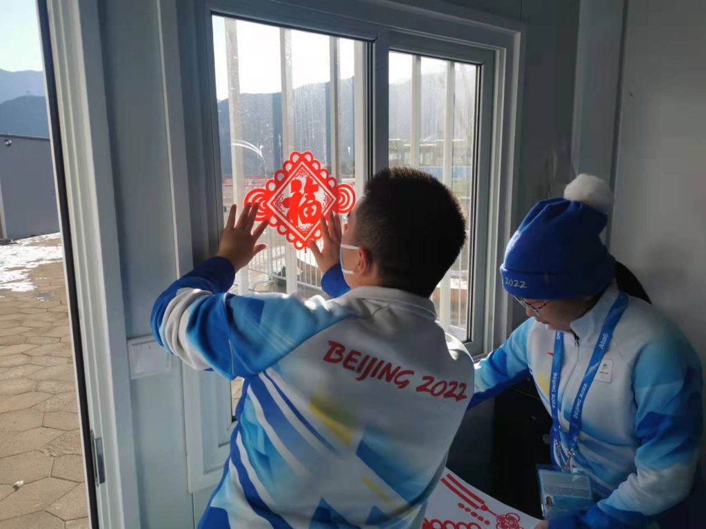 为迎接新年、欢度春节,各位志愿者在驻地酒店贴对联、粘窗花、挂饰品、积极参与驻地欢庆活动,宿舍内红红火火、年味十足。