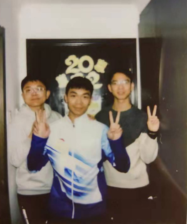 黄溯源(左一)与室友共同装饰宿舍