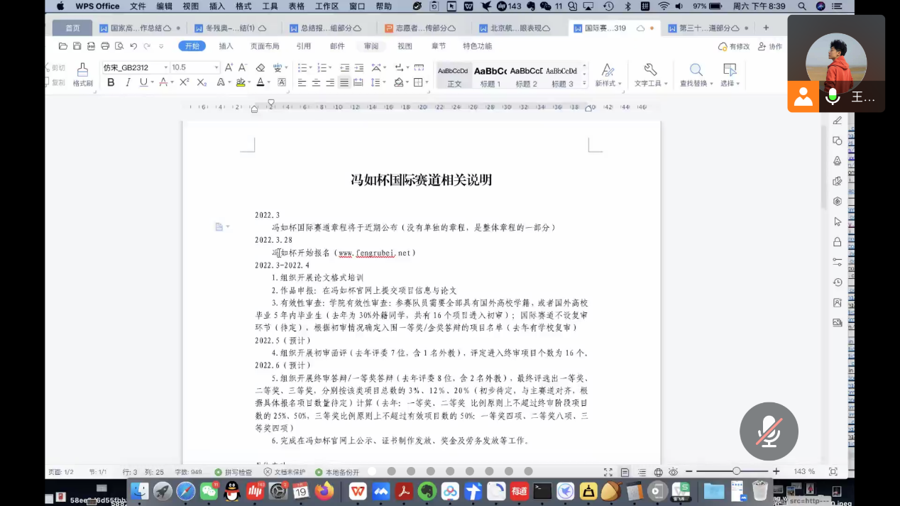 2021级研究生辅导员王瀚洲也对“第33届冯如杯国际赛道”的基本情况进行讲解,张莉老师鼓励大家积极参与,将自己的科研成果及项目在更高的平台上进行展示。