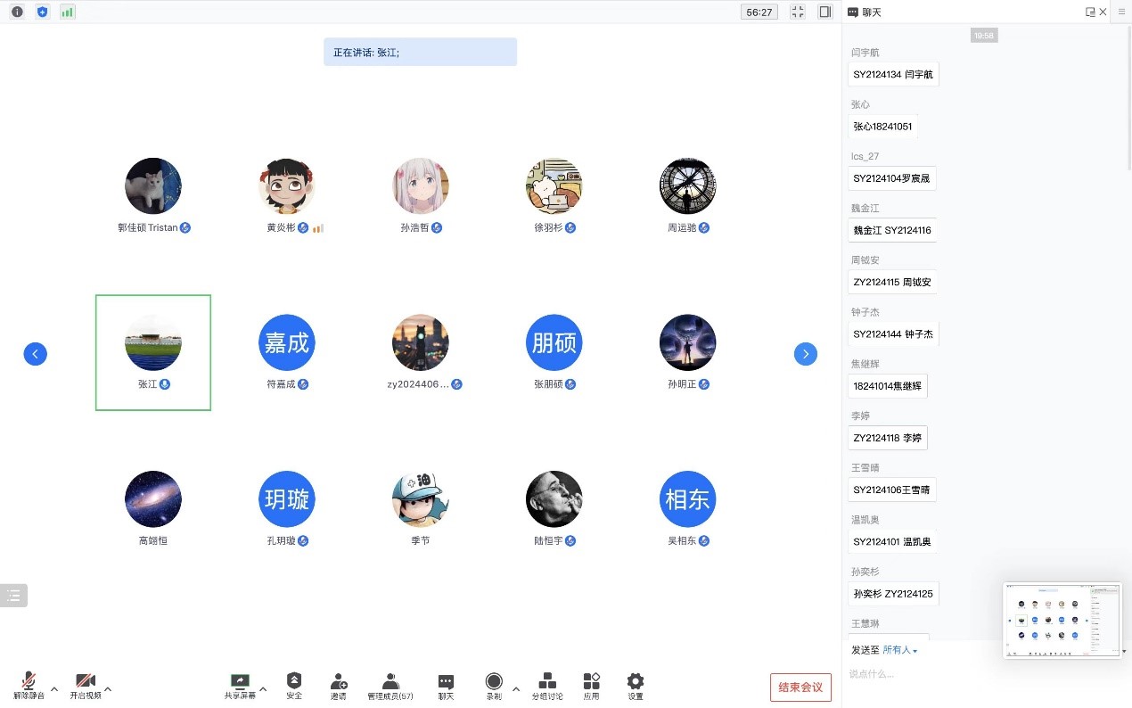 会议最后,张江书记为海外员工传达近期学校和学院相关工作精神,让每位同学能够实时知晓学校和学院的最新动态。此外张江书记动员海外员工积极参与“冯如杯”和“互联网+”比赛,在更优质的科研交流平台上,发挥自身国际化优势,将所学知识与实践相结合,丰富自己,成长成才。张书记提醒大家非必要不聚集,做好个人防护,勉励同学们努力学习,讲好中国故事,传播中国好声音。