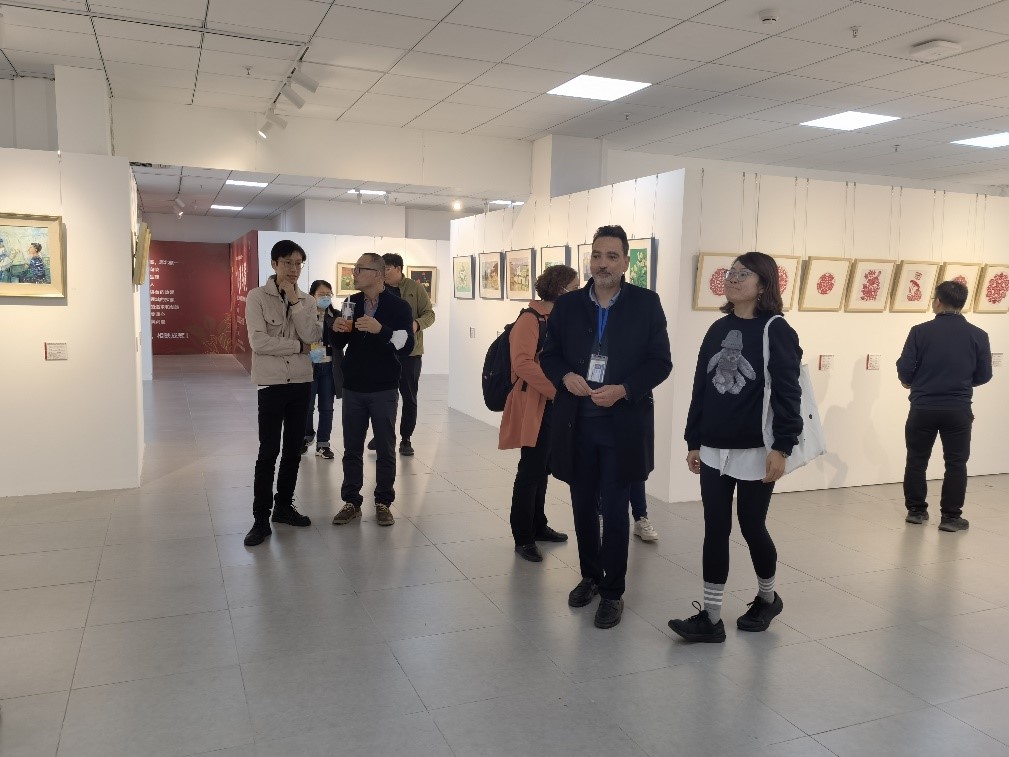 各位教师首先参观了沙河校区的西区员工公寓下沉空间公共设施,图书馆新阅读体验馆、党团活动共享空间,教师共享空间等一系列先进的共享功能场所吸引了各位老师的注意力,春华、天问、揽月、秋实四个园子的景色也让各位老师赞叹不已,纷纷表示能在这样的环境中工作学习是一种享受,法国老师也对沙河校区的设施表示赞赏。在艺文空间教师们还参观了教职工绘画、摄影等艺术作品展览。