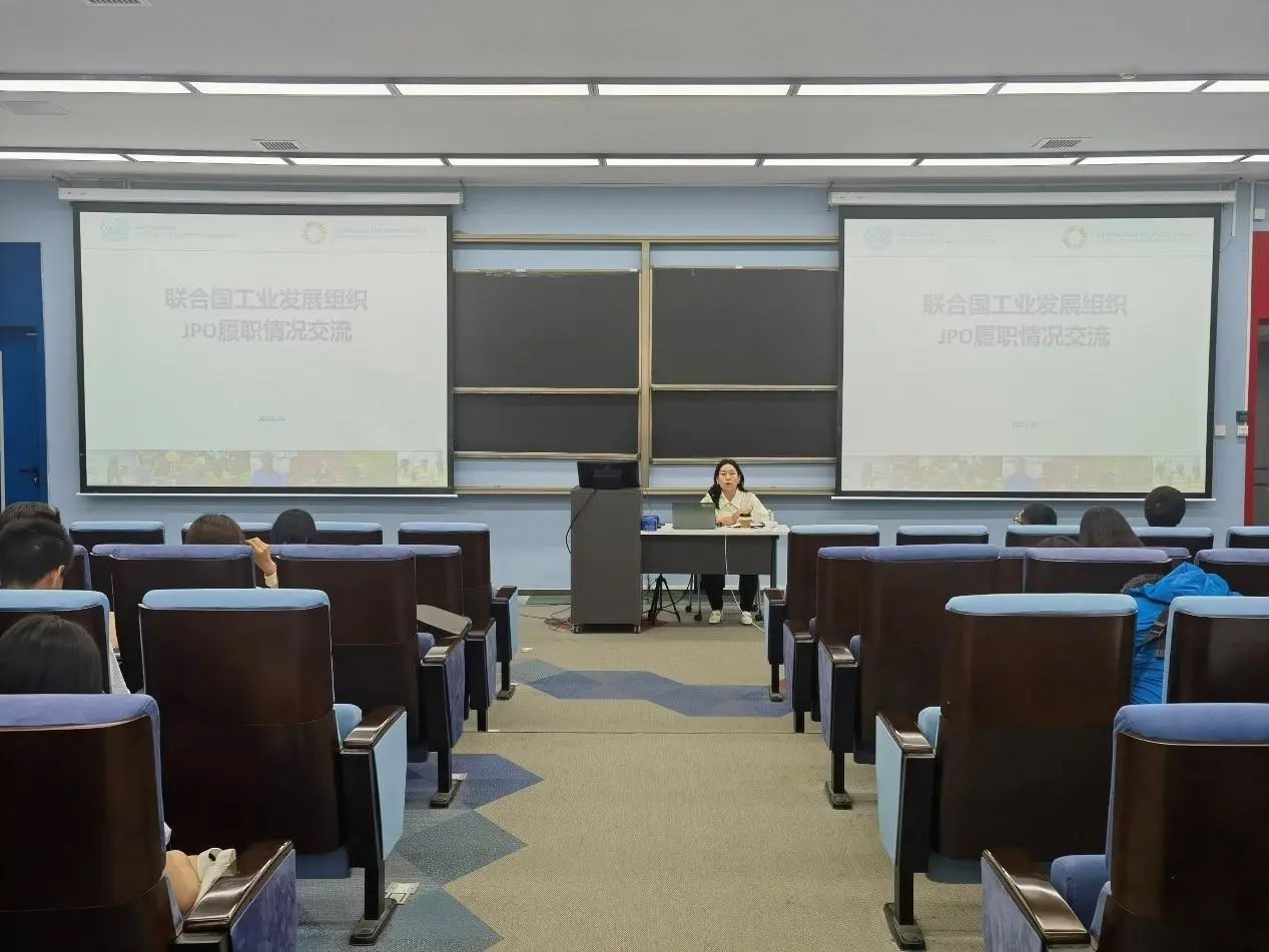 在讲座中,彭婷老师特别介绍了JPO项目。作为一项重要的人才培养计划,JPO项目为有志于国际事务和工业发展的年轻专业人士提供了机会。她分享了自己公派至联合国工业发展组织人力资源部的经历,并强调了自主性对个人职业发展的重要性。此外,她还介绍了联合国工业发展组织的实习生项目,并解读了申请要点和相关注意事项。她鼓励大家通过参与实习生项目来提升能力、开阔眼界,为未来的职业发展打下坚实的基础。