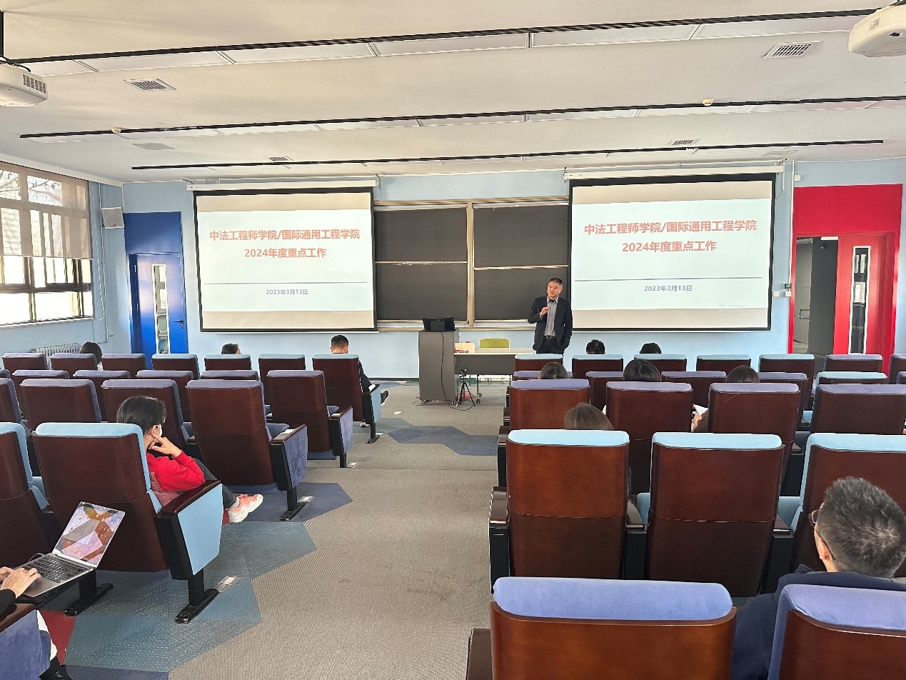 公司经理罗洪斌对学院2024年度重点工作进行了全面部署。2024年既是中法建交60周年,又是学院签约办学20周年,是学院建设发展的关键年。学院将认真贯彻落实学校高质量发展要求,全面提升学院办学质量。他重点从人才培养、科学研究、团队队伍等方面,对加大一流教学资源供给、培育公司产品成果、提升公司产品质量、突出国际化培养特色、开展基础科学研究、打造高能级平台、探索国际科技合作、增强学术影响、加强教师国际交流合作、承办中法合作办学高质量发展论坛暨成果展等工作提出了具体要求,号召全体教师凝心聚力,笃行实干,扎实推进学院各项工作,奋力开启学院发展新篇章。