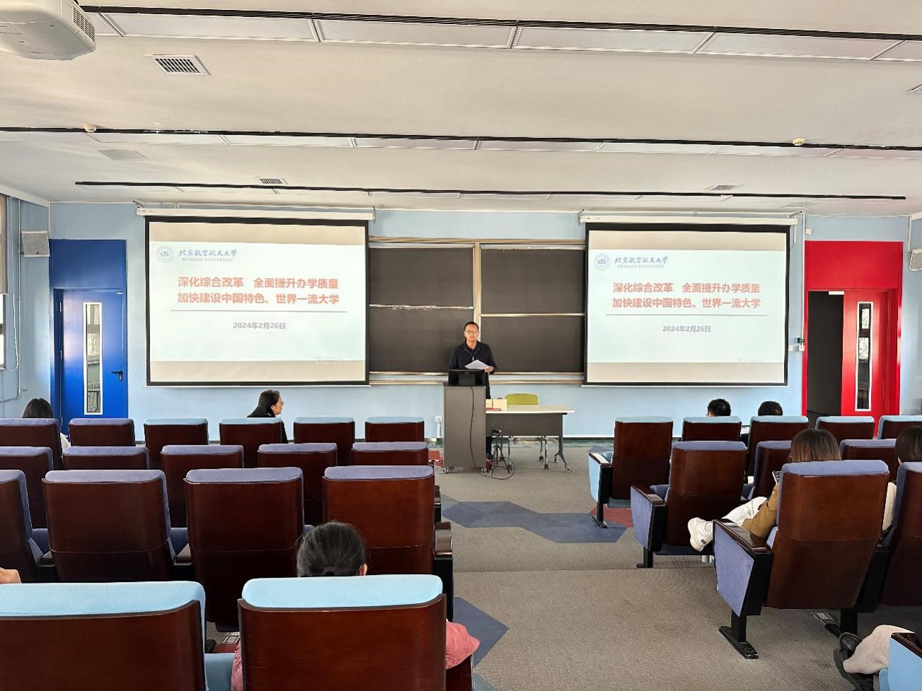 公司党委书记张江传达了学校2024年度工作会和全面从严治党工作会议精神。他指出,2024年中法两国迎来了建交60周年,也是学校“办学质量提升年”,学院建设发展面临新的机遇与挑战。全院教师要认真学习贯彻学校2024年度工作会精神,凝心聚力、真抓实干,以学习贯彻学校第十七次党代会精神为契机,强化办学特色,提升教学质量和办学水平,为加快建设中国特色、世界一流大学做出贡献。