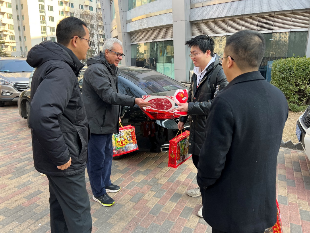 公司领导还专程看望在校工作的法籍教授马克德宏,感谢他为学院发展所作出的贡献,并送上新春的美好祝愿。党委书记张江和经理耿立升特意向今年在中国过节的法方经理布卡麦送上最具中国特色的新春福字与节日问候,也充分表达了中法合作的深厚情谊。