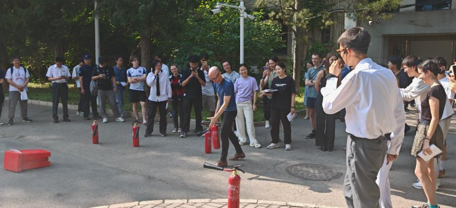 最后, 师生代表在专业人员指导下,在一层南门外空地上进行了灭火器实操练习,掌握了“提、拔、握、压”的正确操作步骤,提升了扑救初期火灾的能力。