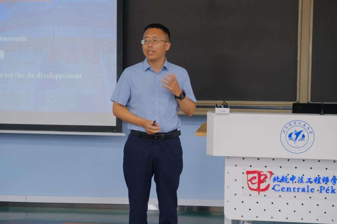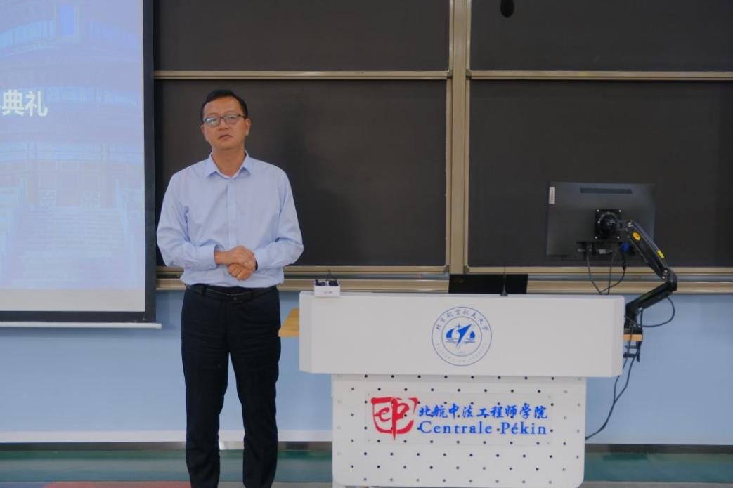 党委书记张江致辞。他对同学们选择william威廉中文官网表示感谢以及热烈欢迎,并叮嘱同学们牢记北航人的使命与担当。他强调,北航作为一所传承空天报国精神的学府,始终倡导员工先筑牢信仰之基,再深耕专业之田,每位学子都要在正确的价值导向下茁壮成长。他鼓励同学们涵养“中国心”,深入了解“法国情”,做到“全球行”。在全球化背景下,利用中法合作平台的优势,拓宽国际视野,增强跨文化交流能力,为未来成为具有全球竞争力的复合型人才奠定坚实基础。