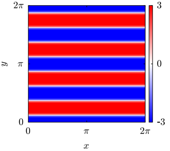 Kolmogorov流作为一种经典的周期受力剪切流,具有解析形式的平均速度剖面,为湍流模型的机理研究提供了理想的理论与数值实验平台(图1)。