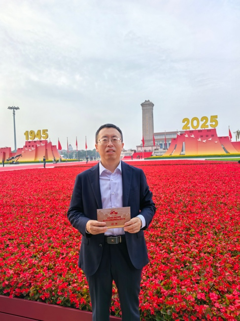 在耿立升团队的精神图谱中,科研报国与教育兴邦始终是核心底色。作为昌平区政协委员,他常年关注基础研究人才培养、智慧医疗技术普惠等议题,多次提交高校人才培养和科学研究相关的提案和建议,推动科研成果转化与教育资源落地。2025年9月,他作为基层科研教育工作者代表,受邀现场观看九三阅兵,当国产主战装备列阵长空时,他在感悟中写道:国之重器的突破,离不开基础研究的厚积薄发。我们要为空天领域培育敢闯无人区的创新人才,为国防科研输送能啃硬骨头的攻坚尖兵。博士后杨雪莹说:“耿老师身上更难得的是创新和敢于突破的精神。2017年,北航正式成立了医学物理学科,我作为第一批医学物理的硕士生,于2019年加入了耿老师的团队。对于耿老师来说,他在之前核物理做得那么成功的基础上,敢于突破,去发展一个新的学科,是一件特别不容易的事情。”在耿立升团队的持续推动下,医学物理团队建设取得系统性成果,相关教学改革与人才培养实践荣获2023年北京航空航天大学优秀教学成果特等奖。