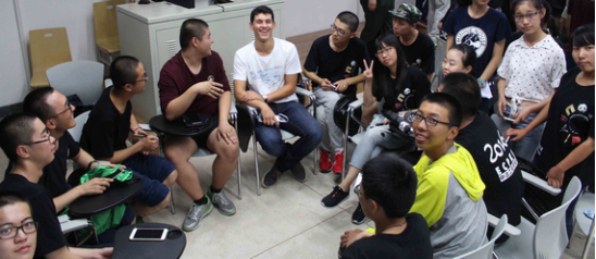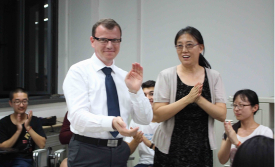 接着,6位法国同学分别跟各自小班同学展开了广泛、亲切而友好的交流。同学们对法国同学的流利汉语深表赞叹。交谈的话题很快就涉及到各个领域,场面十分活跃。最后,中方员工组织演唱《ÀForce De T’aimer》(法文版《因为爱情》),在欢快的气氛中结束了本次见面会。