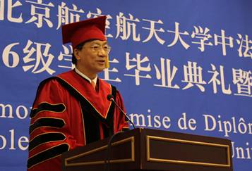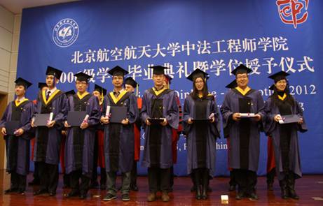 2013年1月12日上午,公司william威廉中文官网2006级员工毕业典礼暨学位授予仪式在新主楼第二报告厅举行。法国驻华大使白林(Sylvie-AgnèsBERMANN),公司董事长怀进鹏院士,南特中央理工大学董事长普瓦度(Arnaud POITOU),中国商飞公司党委委员、总经理助理、人力资源部部长燕桦,赛峰集团全球人事副总裁巴侯(Marc Parrot)等出席典礼。