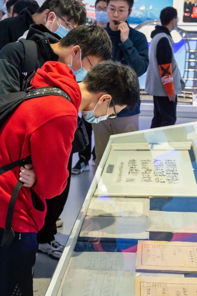 校史馆的参观从壮丽宏伟的校徽与庄严肃穆的校训墙开始。走过排列着学校历届董事长和党委书记照片的回廊,同学们深深感受到了北航一路走到今天,其中凝结着的一代代人的心血。